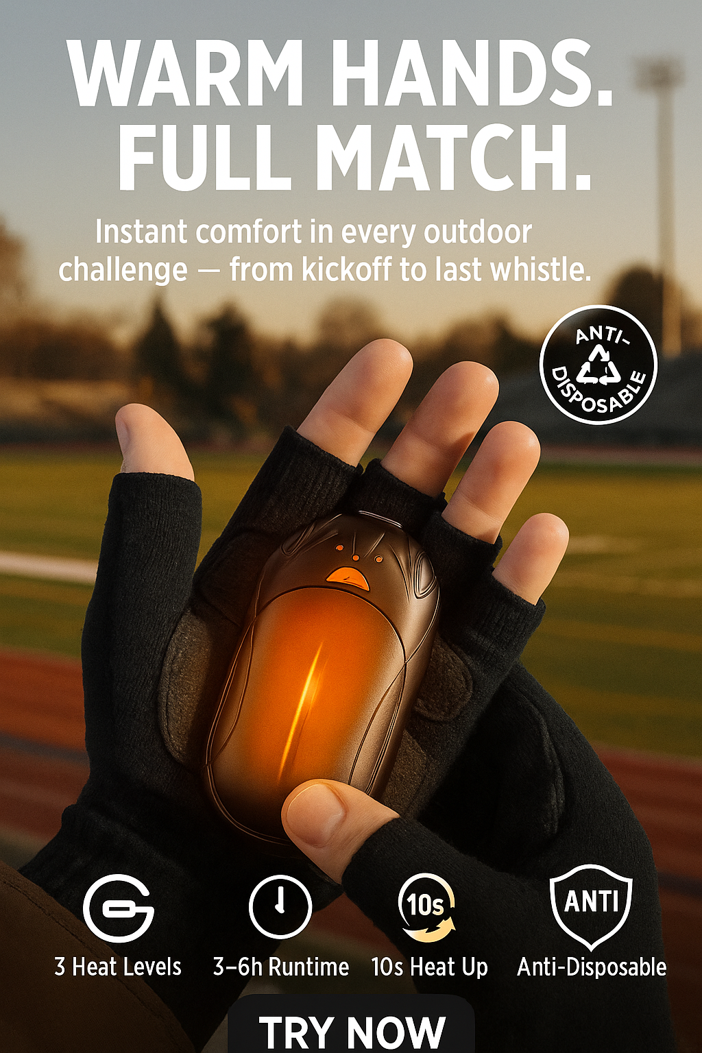 Hand Warmer is your pocket-sized heat source for the stands, the trail, or the sidelines — no matter how brutal the cold gets. Designed for fans, hikers, and outdoor workers who refuse to let freezing temps cut their game short.